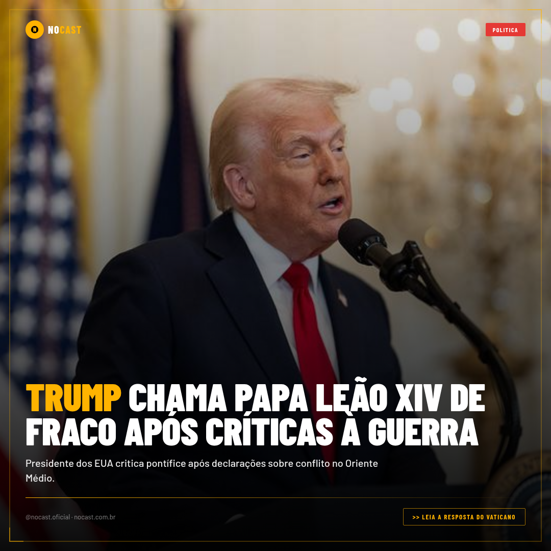 Presidente dos EUA critica pontífice após declarações sobre conflito no Oriente Médio. Navegação de artigos FLAMENGO SOBE AO SEGUNDO LUGAR DO BRASILEIRAO APOS DERROTAR FLUMINENSE PETROLEO VOLTA A SUPERAR US$ 100 APOS BLOQUEIO DE TRUMP