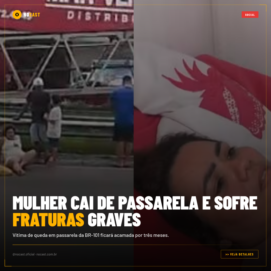 Vítima de queda em passarela da BR-101 ficará acamada por três meses. Navegação de artigos TOFFOLI CHAMA CPI DE AVENTUREIRA E FALA EM CASSAÇÃO CHEFE DE FACÇÃO DO ES É TRANSFERIDO PARA PRESÍDIO FEDERAL