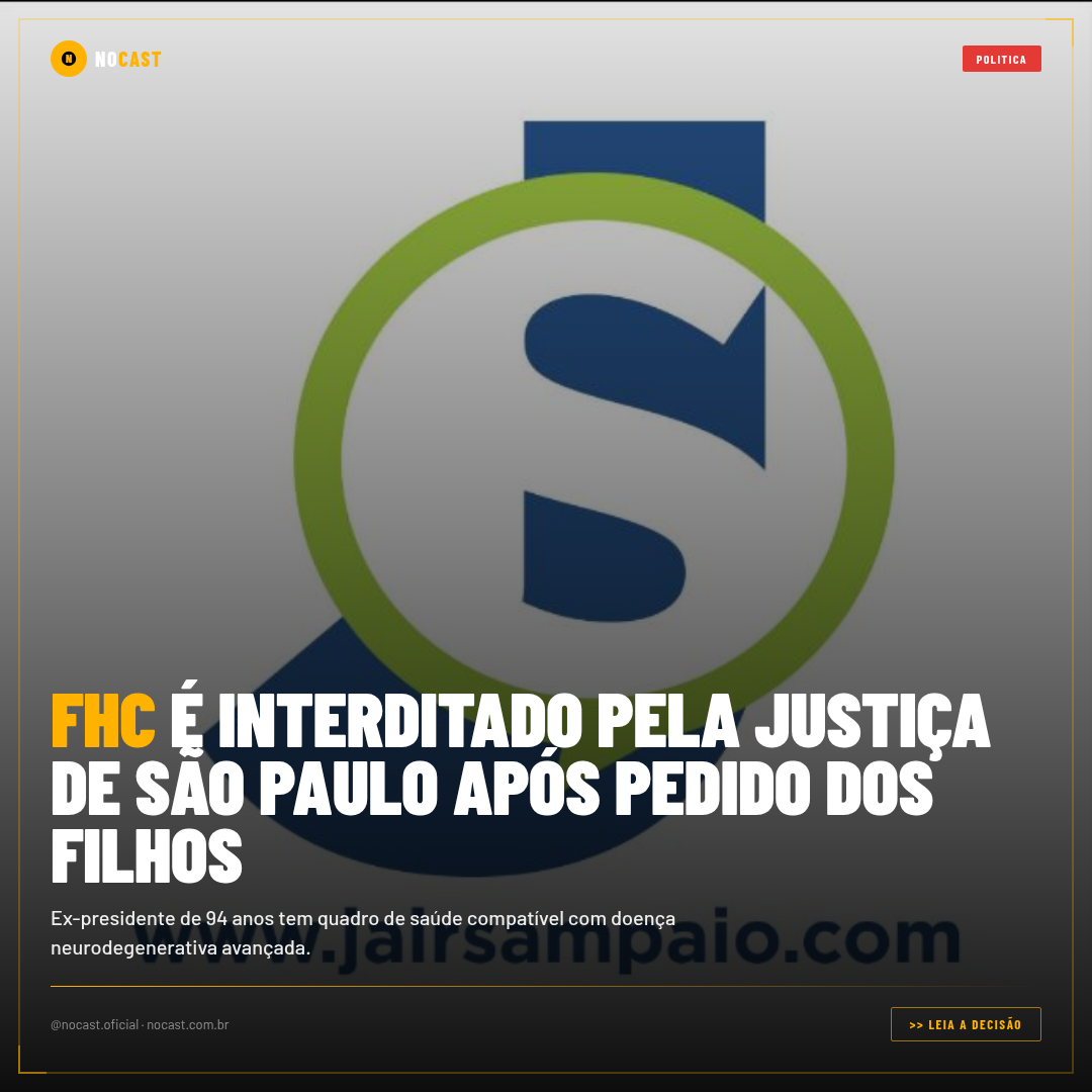 Ex-presidente de 94 anos tem quadro de saúde compatível com doença neurodegenerativa avançada.